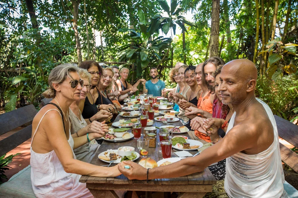 Our team sets up the shalas, organizes private huts or shared cabanas, and cooks seasonal meals that can be tailored for vegetarian, vegan, and gluten-free diets. Ayurvedic therapies, massage, and extra staff can also be arranged when needed.