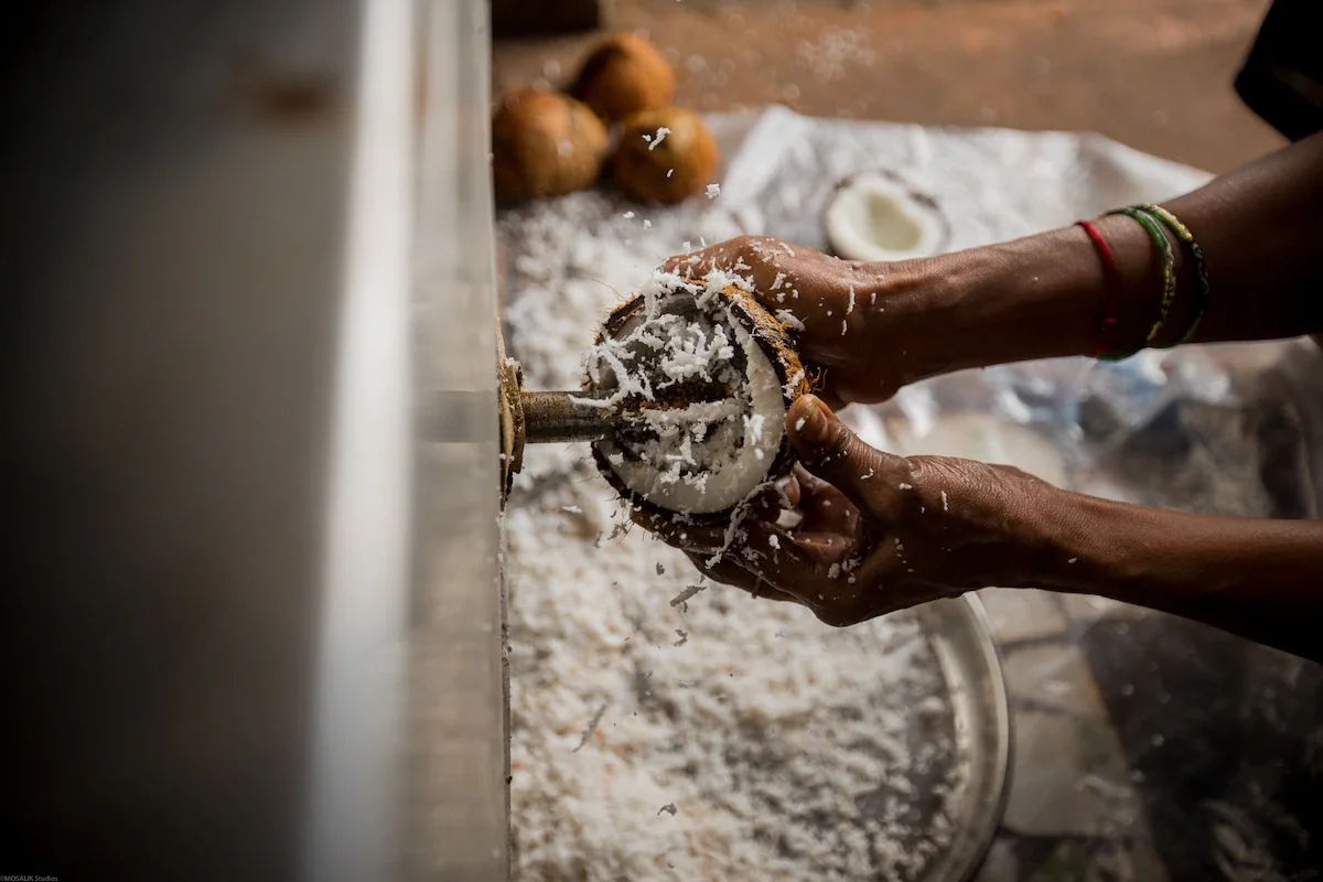 We still make good use of them, pressing fresh coconut milk for our curries and chutneys, as a plant-based substitute for vegan dishes, and making our own coconut oil in small batches.
