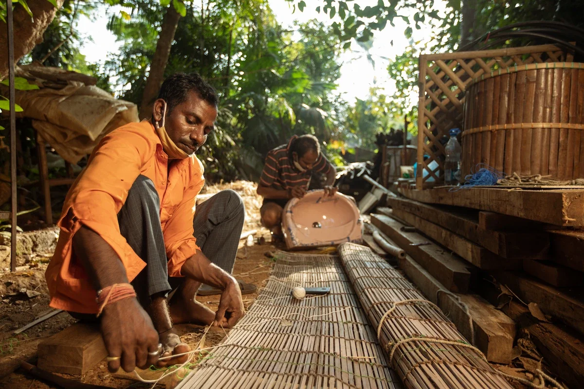 Our eco huts are handmade with bamboo, rice straw, and laterite stone, using what the land offers. They are built to breathe with the forest, not shut it out.